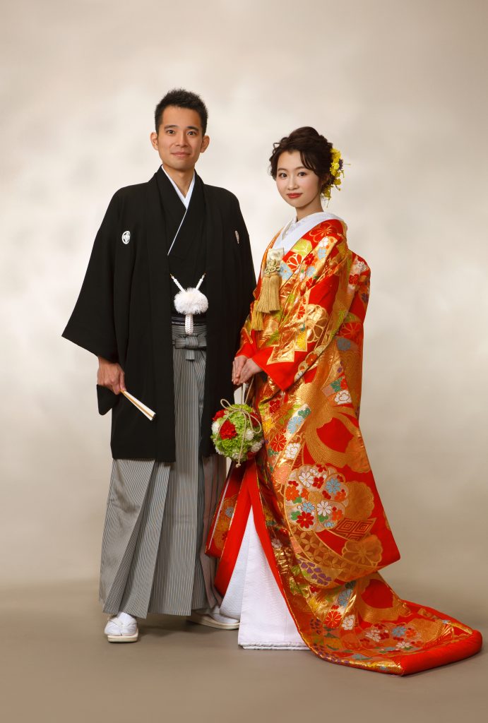 ご親族集合写真と式服・お色直しのお二人写真が一般的です。